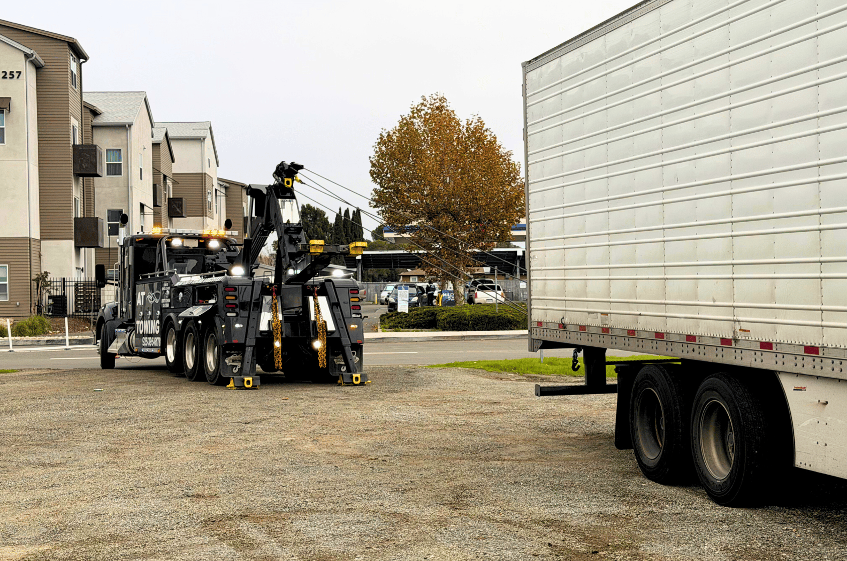 We also provide 18-wheeler towing , semi towing and recovery , and tractor trailer tow service for owner-operators and fleet managers who can't afford to have a truck sitting on the shoulder for half a day waiting for someone to show up. Our semi truck tow company operates with our own equipment, which means you're not waiting on a subcontractor who may or may not have the right wrecker for the job. If you're searching for semi towing near me , towing semi truck near me , or semi tow service near me , keep our number handy. We've pulled trucks off the side of I-80, out of the Fairfield weigh station, and from job sites all over Solano County.